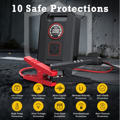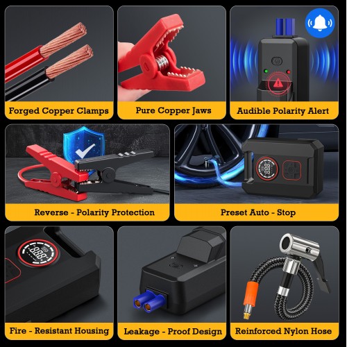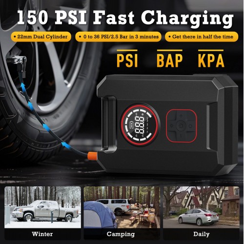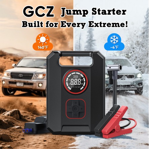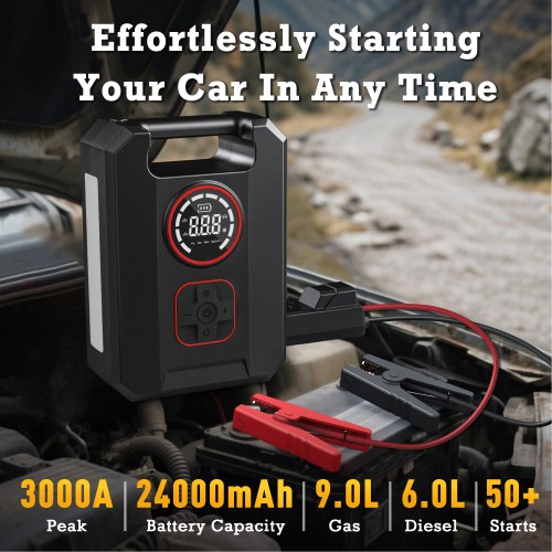 GCZ 3000A Peak Portable Jump Starter with Air Compressor 150PSI, Battery Booster (up to 9.0L Gas&6.0L Diesel), 24,000mAh Power pack with Dual Cylinder & LED Display&Flashlight